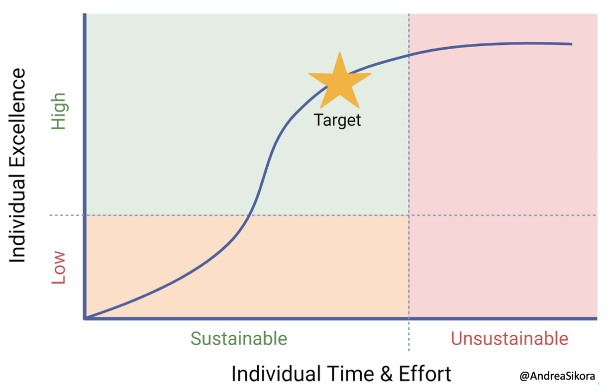Prong 2: Prioritize Sustainable Excellence in systems, personal practice, and education of trainees. Importantly, this ‘Frank Starling Curve’ of ROI (individual effort to results) can be augmented by thoughtful organizational structure and teams.